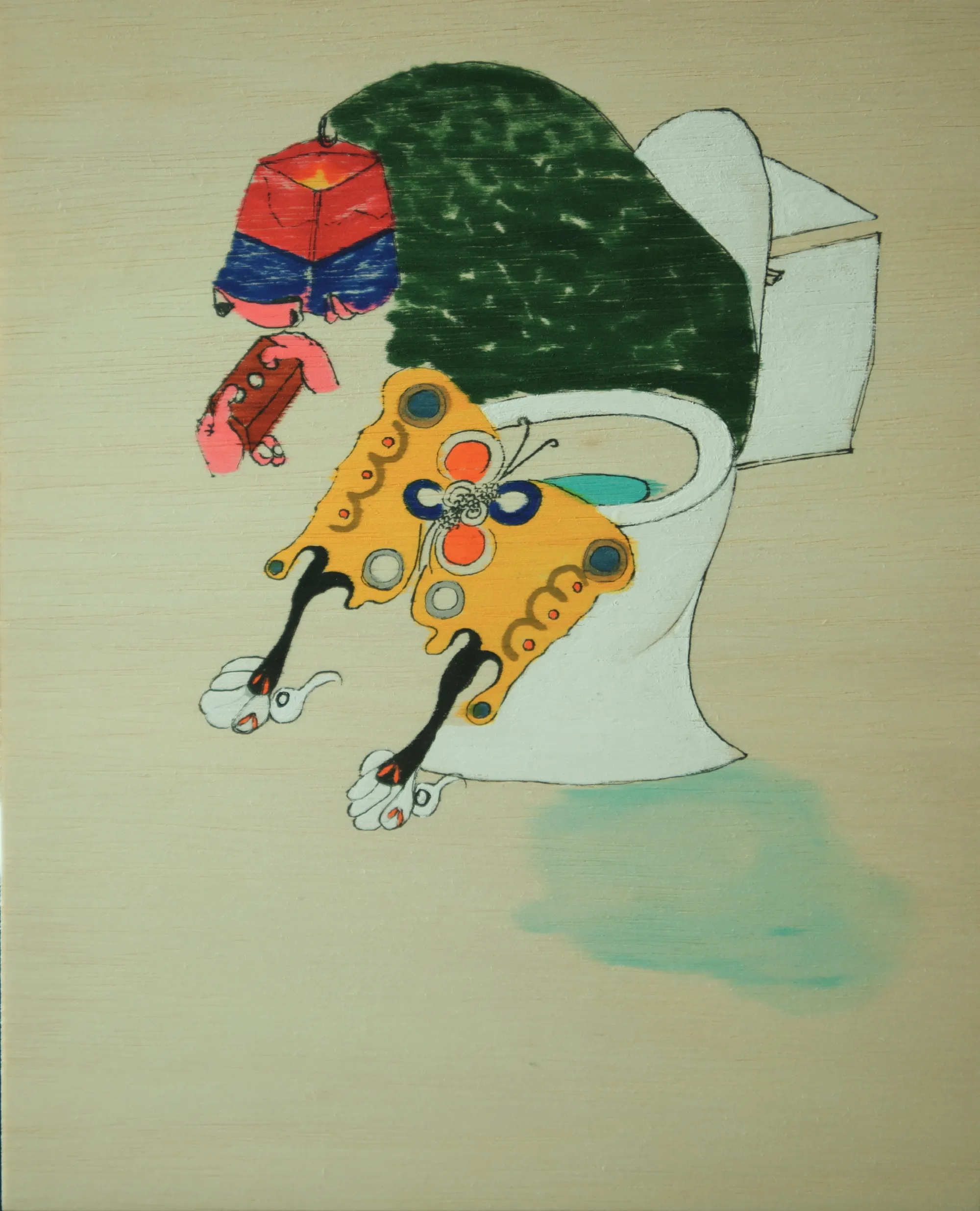 Escapea’r, A man who is staring a brick1, 2020, Brushpen and paint pen on Wood panel, 27.4 x 22cm