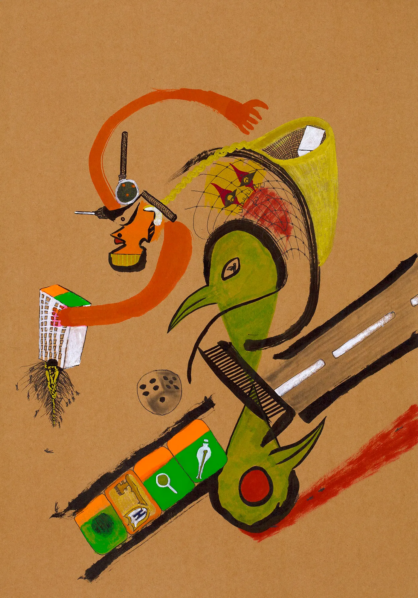 Escapea’r, Ragpicker and Blue marble, 2021, Pen on craft paper, 42 x 28.5cm