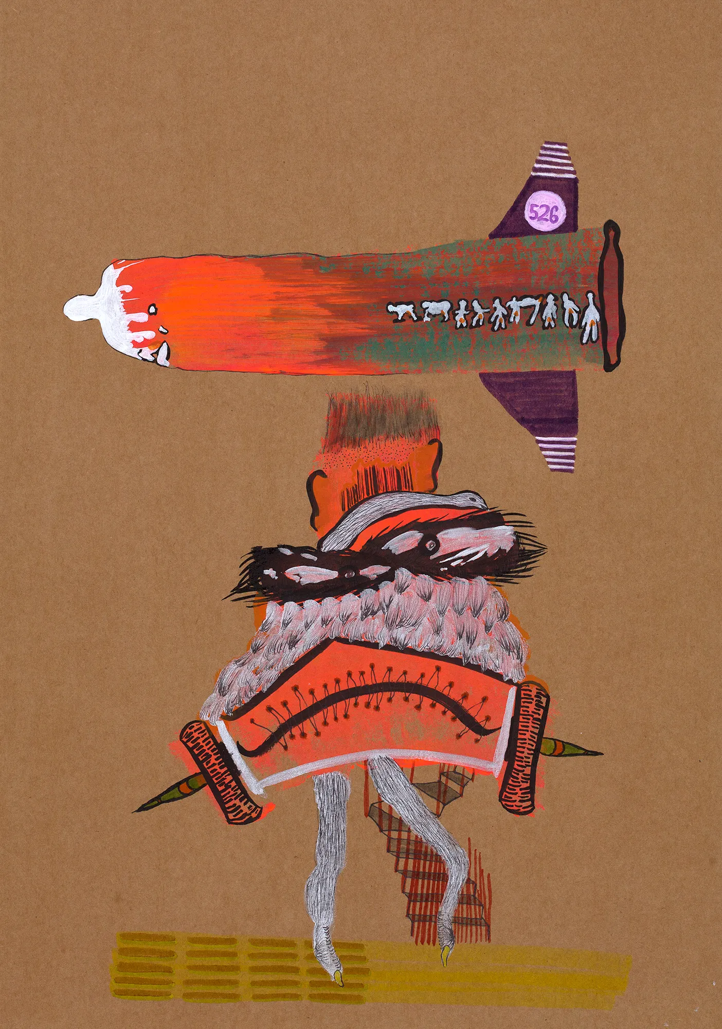 Escapea’r, Unbearable heaviness of appetency, 2021, Pen and acrylic on craft paper, 42 x 28.5cm