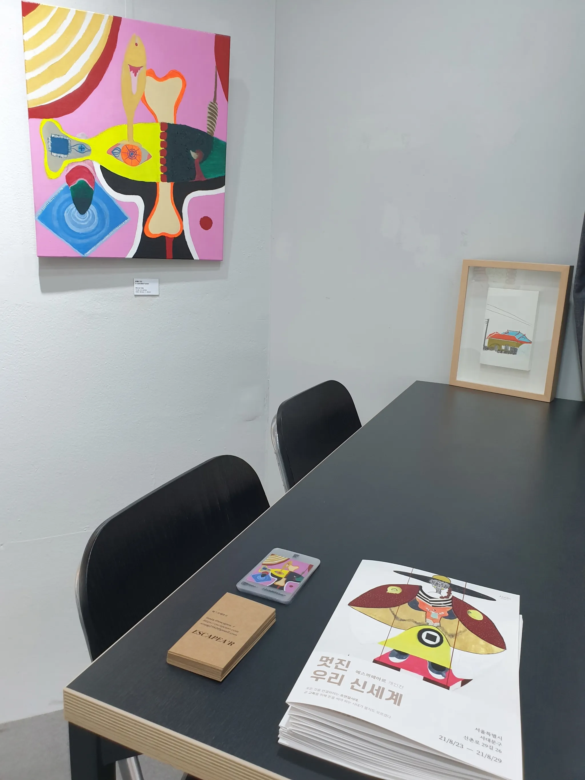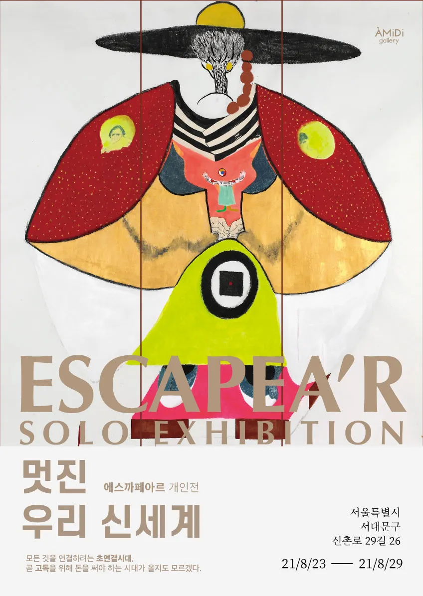 에스까페아르의 두 번째 개인전 《멋진 우리 신세계》는 스마트폰의 보급과 IT기술의 급속한 발전으로 모든 것이 실시간으로 연결되는 사회를 살아가는 사람들에 관한 전시이다. 전시는 두 공간으로 나뉘어 진행되는데, 첫 번째 공간에서는 초(超)연결된 사회를 사는 사람들을 나타내고 있다. 단순한 원거리 통신의 의미를 넘어 개인과 개인, 사람과 사물 간 양방향 실시간 소통이 이루어지자, 물리적 거리를 뛰어넘는 새로운 차원의 ‘신세계’가 도래하고 있음을 표현했다. 두 번째 공간에서는 신세계의 가속화로 현대인들의 IT기기에 대한 지나친 의존증을 표현하였다. 그 뿐만 아니라 실시간으로 IT기업과 정부로부터 자신의 일거수일투족이 기록되며 추적 당하고 때론 통제 당하기도 하는 현실을 표현하였다.