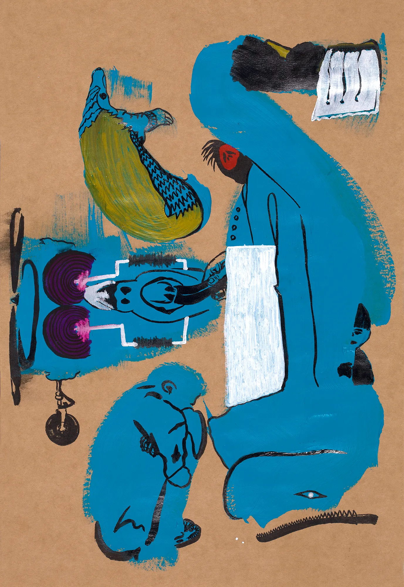 Escapea’r, Greed and extinction, 2021, Pen and acrylic on craft paper, 42 x 28.5cm